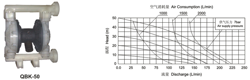 1、不需灌引水.吸程高達(dá)5m.揚程達(dá)70m.出口壓力≥6bar。2、流動寬敞,通過性能好.允許通過最大顆粒直徑達(dá)10mm。抽送泥漿、雜質(zhì)時,對泵磨損甚微;3、揚程、流量可通過氣閥開度實現(xiàn)無級調(diào)節(jié)(氣壓調(diào)節(jié)在1~7bar之間):4、該泵無旋轉(zhuǎn)部件,沒有軸封,隔膜把抽送的介質(zhì)與泵的運動部件、工件介質(zhì)完全隔開,所輸送的介質(zhì)不會向外泄漏。所以抽送有毒、易揮發(fā)或腐蝕性介質(zhì)時,不會造成環(huán)境污染和危害人身安全;5、不必用電.在易燃、易爆場所使用安全可靠;6、可以浸沒在介質(zhì)中工作;7、使用方便、工作可靠、開停只需簡單地打開和關(guān)閉氣體閥門.即使由于意外情況而長時間無介質(zhì)運行或突然停機(jī)泵也不會因此而損壞.一旦超負(fù)荷,泵會自動停機(jī),具有自我保護(hù)性能,當(dāng)負(fù)荷恢復(fù)正常后,又能自動啟動運行;8、結(jié)構(gòu)簡單、易損件少,該泵結(jié)構(gòu)簡單,安裝、維修方便,泵輸送的介質(zhì)不會接觸到配氣閥,聯(lián)桿等運動部件,不象其他類型的泵因轉(zhuǎn)子、活塞、齒輪、葉片等部件的磨損而使性能逐步下降;9、可輸送較粘的液體(粘度在1萬厘泊以下);10、本泵無須用油潤滑,即使空轉(zhuǎn).對泵也無任何影響,這是該泵最大特點。