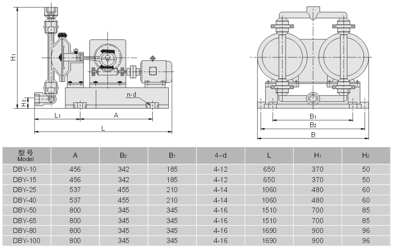 | ■ 產(chǎn)品概述 電動隔膜泵是一種新型的泵類,近年來,由于在隔膜材質(zhì)上取得了突破性的進(jìn)展,國際上越來越多的工業(yè)化國家采用此種型式的泵,取代部份離心泵、羅桿泵,來應(yīng)用于石化、陶瓷、冶金等行業(yè),DBY型隔膜泵適用于低壓,即出口壓力≤3kgf/cm2的場合。 ■ 性能特點(diǎn) 一、不需灌引水,自吸能力達(dá)7米以上。 二、通過性能好,直徑在10毫米以下的顆粒、泥漿等均可以毫不費(fèi)力地通過。 三、由于隔膜將被輸送介質(zhì)和傳動機(jī)械件分開,所以介質(zhì)絕對不會向外泄漏。且泵本身無軸封,使用壽命大大延長。根據(jù)不同介質(zhì),隔膜分為氯丁橡膠、氟橡膠、丁晴橡膠等,可以滿足不同用戶的要求。 四、泵體介質(zhì)流經(jīng)部份,可根據(jù)用戶要求,分為鑄鐵、不銹鋼、襯膠,電機(jī)分為普通式和防爆式(B3d)兩種。 ■ 主要用途 1. 各種劇毒、易燃、易揮發(fā)液體。2. 各種強(qiáng)酸、強(qiáng)堿、強(qiáng)腐蝕液體。3. 可輸送較高溫度的介質(zhì)150℃。4. 作為各種壓濾機(jī)前級送壓裝置。5. 熱水回收及循環(huán)。6. 油罐車、油庫、油品裝卸。7. 泵吸泡菜果醬、土豆泥、巧克力等。8. 泵吸油漆、樹膠、顏料粘合劑。9. 各種瓷器釉漿水泥灌漿灰漿泥漿。10. 各種橡膠漿乳膠、有機(jī)溶劑、填料。11. 用泵為油輪駁船清倉吸取倉內(nèi)污水及剩油。12. 啤酒花及發(fā)酵粉稀漿、糖漿、糖密。13. 泵吸礦井、坑道、隧道、下水道中污水、沉淀物。14. 各種特殊介質(zhì)的吸送。 |